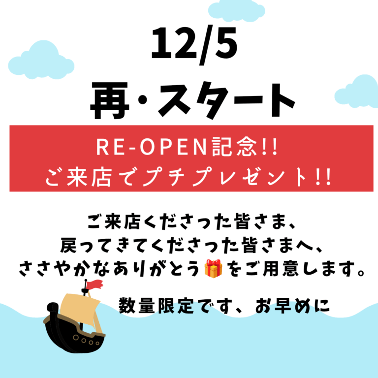 12/5(金)12時〜営業再開!