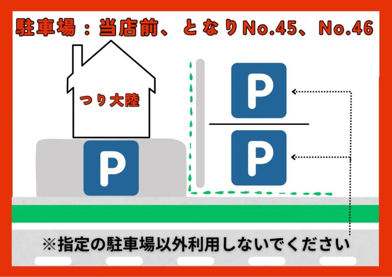 駐車場は店舗前4台とお隣の月極No.45、No.46となります。 お間違えのないよう、よろしくお願い […]