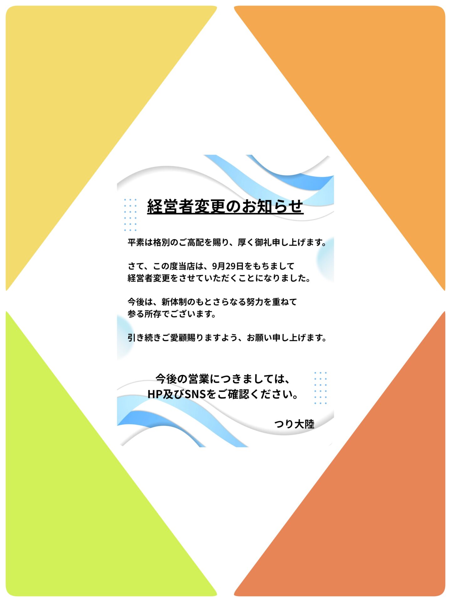 『ご報告』 投稿日 2025-09-29 著者 tsuritairiku カテゴリー News 幼少のころからお客様として遊びに来ていただいた方が、アルバイトを経て、 この度、新経営者として就任していただく運びとなりました。 今後の営業につきましては、このHPおよびSNSにてご案内させていただきます。 この記事を書いた人 tsuritairiku 記事一覧